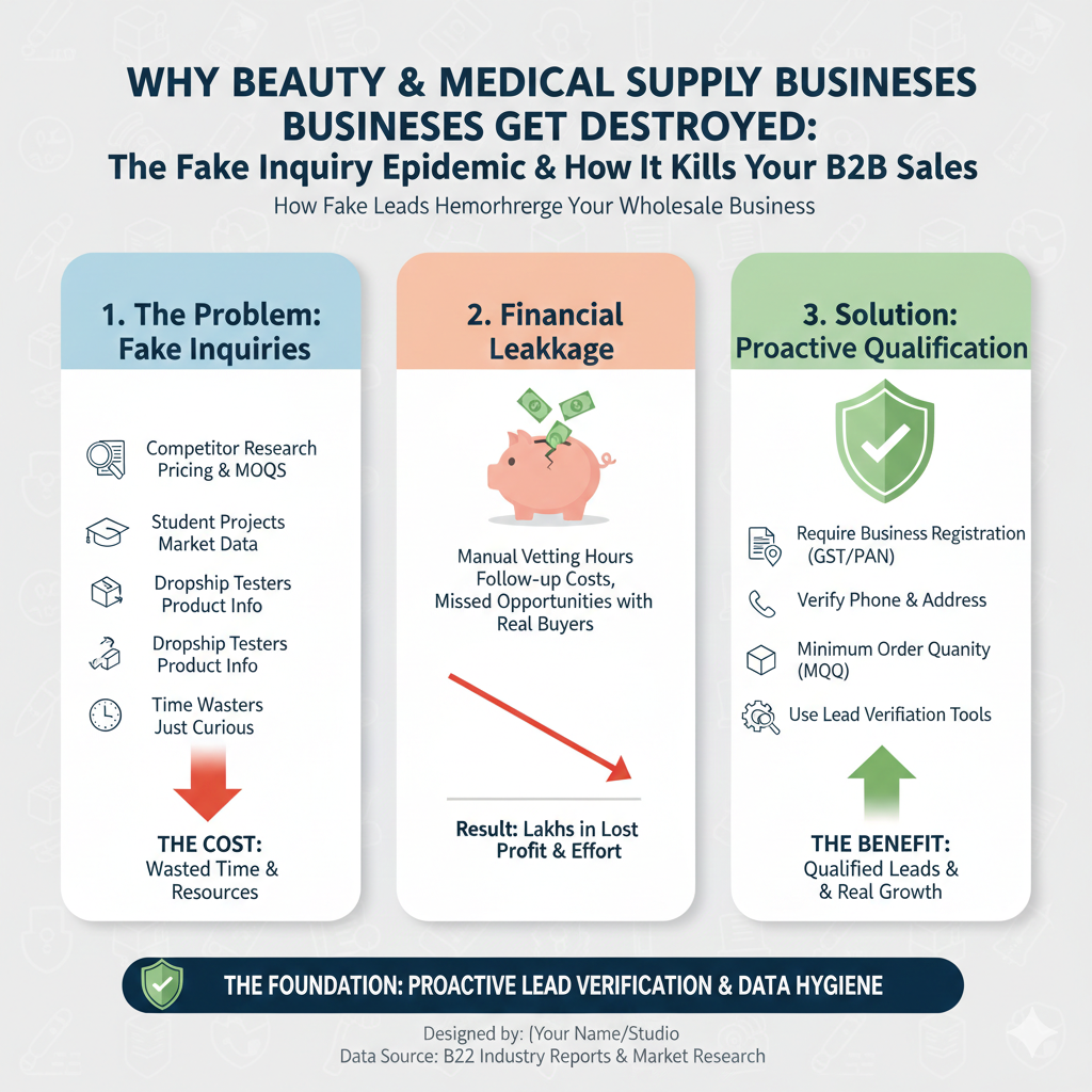 Opportunity Cost: While your sales team is preparing detailed proposals for fake leads, they’re NOT spending time nurturing the few real distributor inquiries you received. A serious salon owner who submitted an inquiry two days ago hasn’t received a follow-up yet because your team is still chasing last week’s temporary email ghosts. You lose the real opportunity to someone who responds faster.